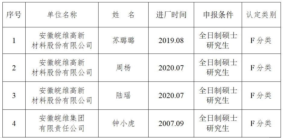 巢湖市人才分類認定人員公示