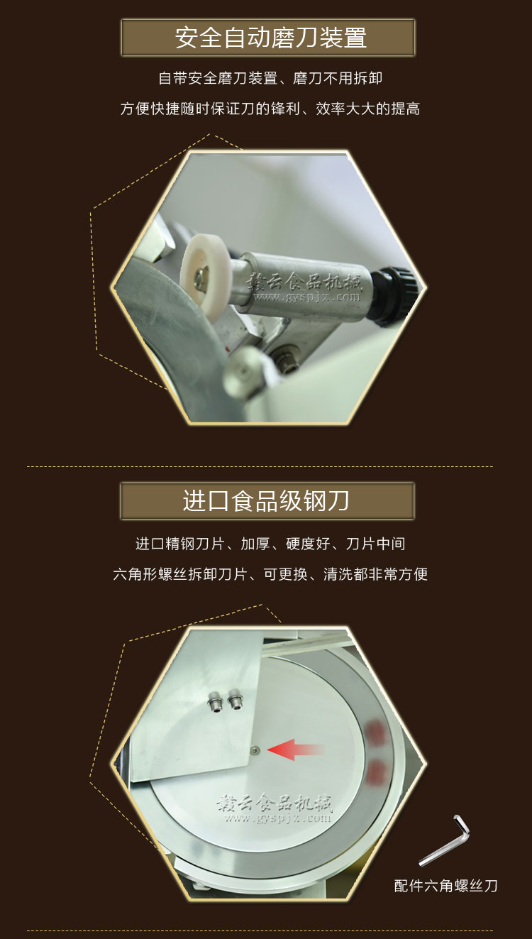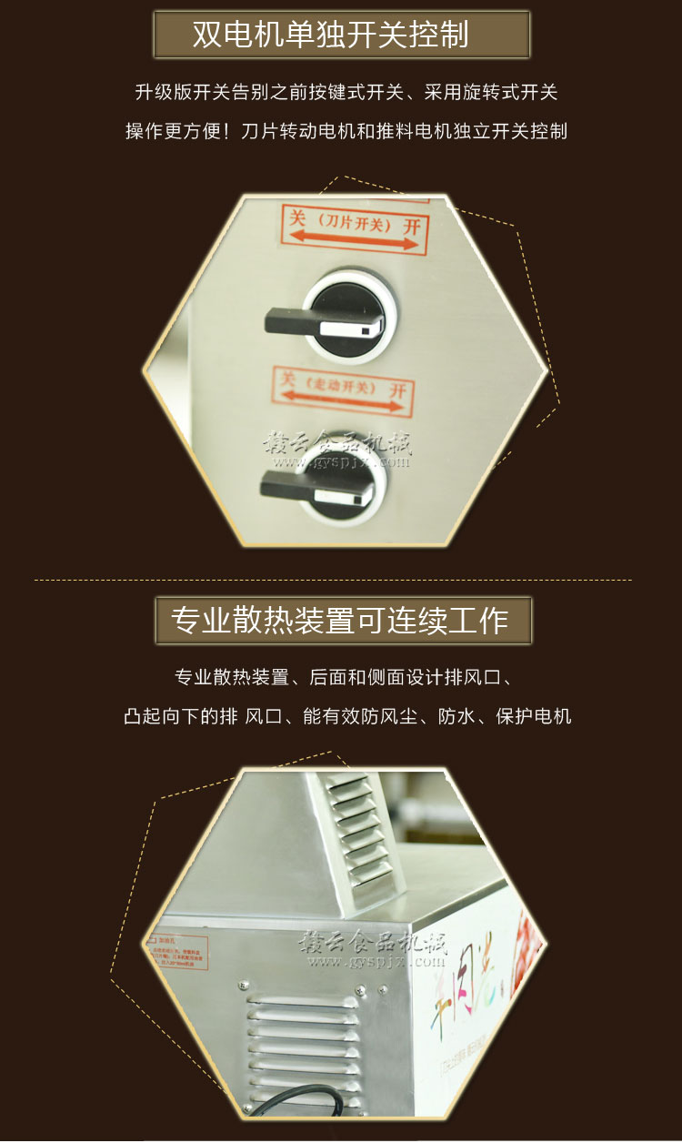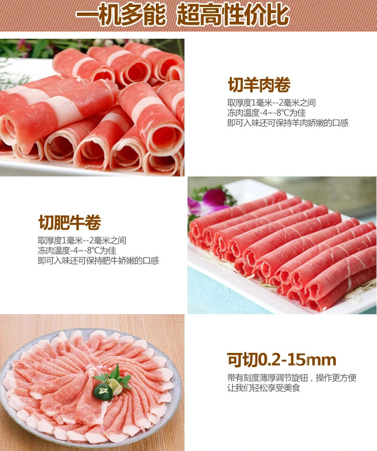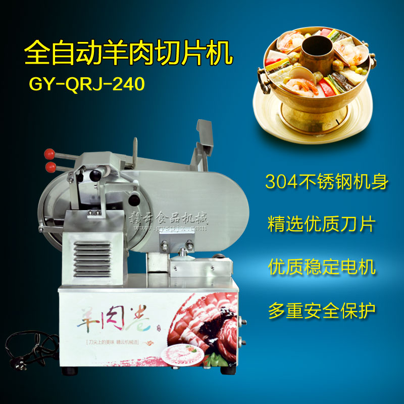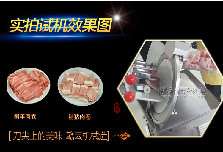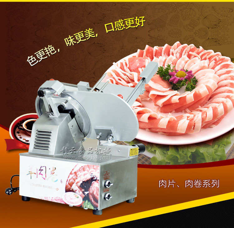 贛云牌全自動(dòng)羊肉切片機(jī)采用加硬不銹鋼刀片,有效的保證了切割效率,切片厚薄可調(diào)0-15mm,可切零度以下凍肉,是凍羊肉、牛肉、豬肉切片,切卷利器;該機(jī)采用雙電機(jī)分別控制切肉刀轉(zhuǎn)動(dòng)和推料走動(dòng),切肉刀轉(zhuǎn)動(dòng)控制開關(guān)關(guān)閉狀態(tài)會(huì)自動(dòng)切斷推料走動(dòng)電機(jī)電源,已確保操作人員的人身安全。整機(jī)設(shè)計(jì)科學(xué)合理、美觀大方、省時(shí)省力、安全高效,是火鍋店、酒店、西餐等加工羊肉卷信賴的設(shè)備。
