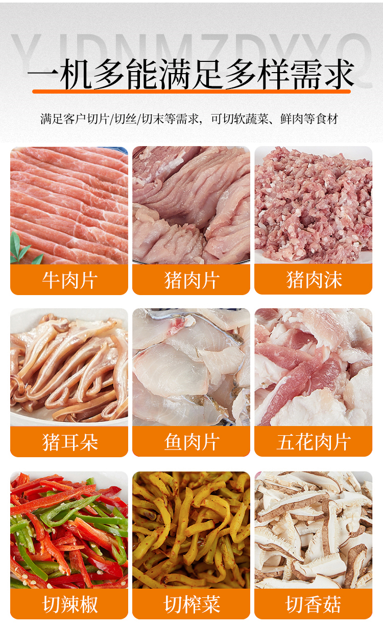 可切軟蔬菜、鮮肉等食材,滿足客戶切片/切絲/切末等需求
