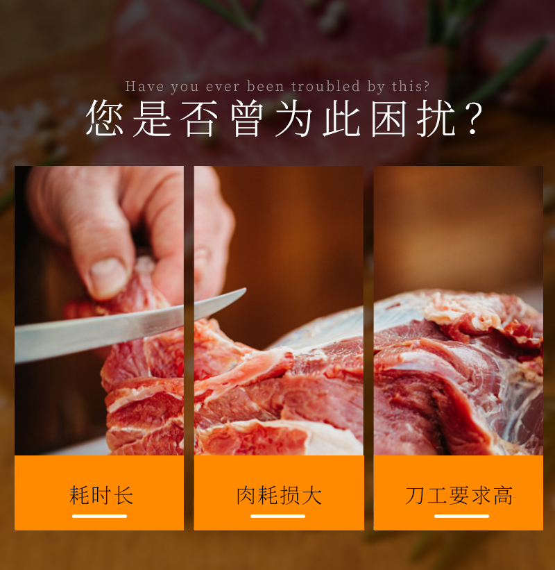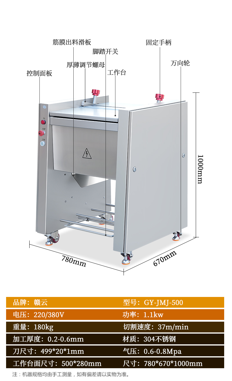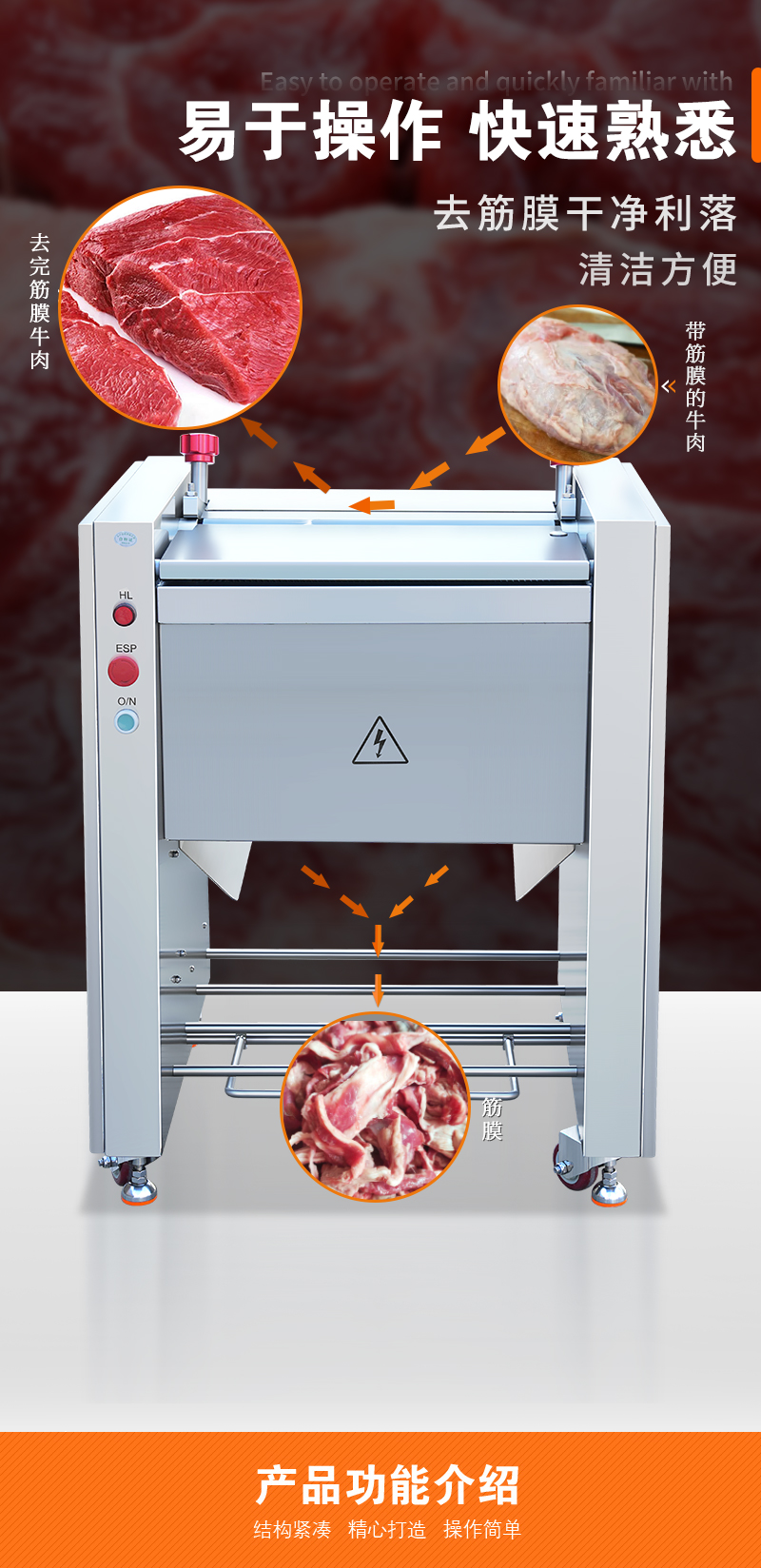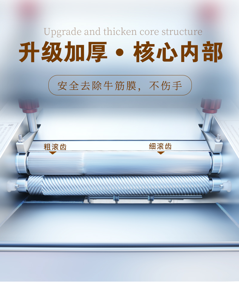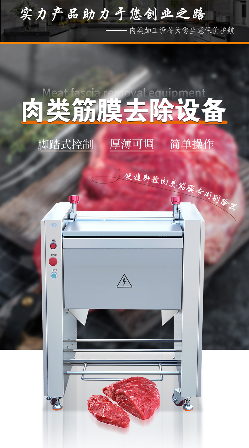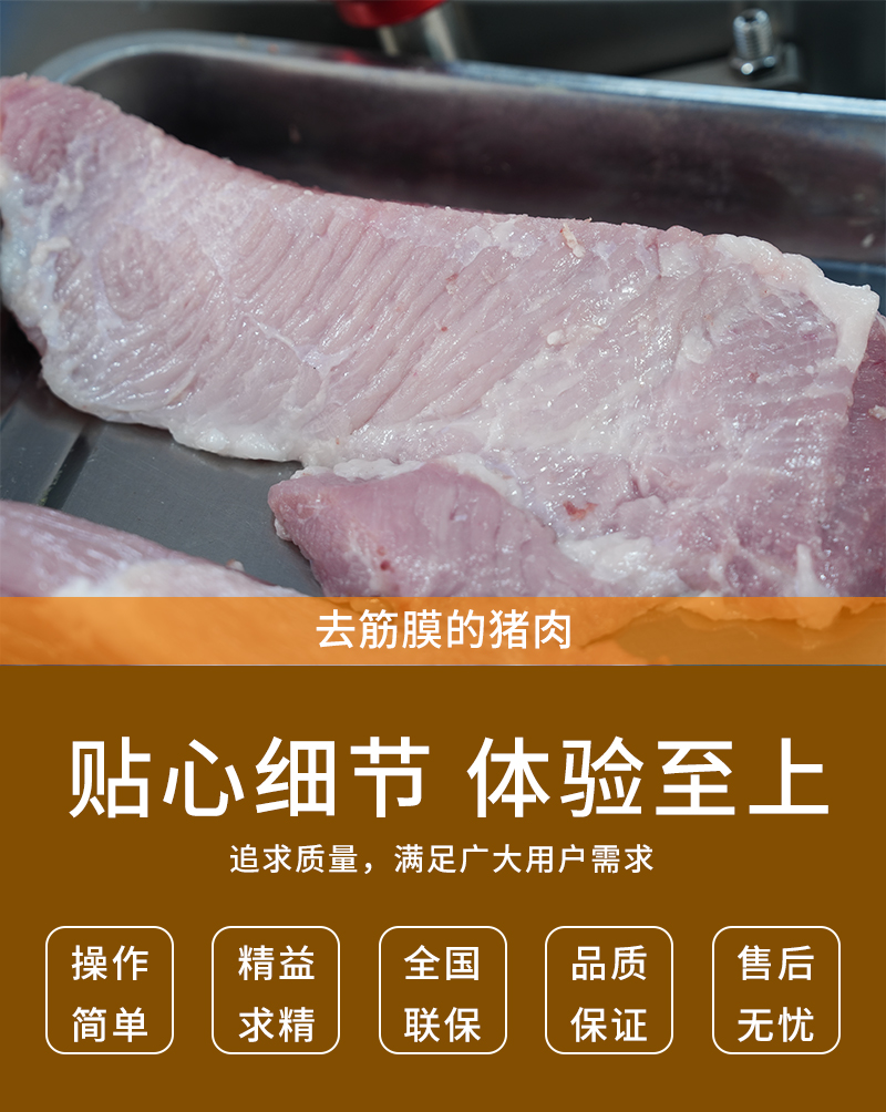 高效去除豬肉、牛肉等肉類食材上的筋膜,適用于多種大小肉塊處理,去筋膜干凈,操作簡單易上手。