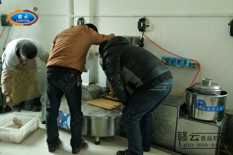 2014年2月16日,贛云接待了贛州本地寧都肉丸加工商戶。在此之前,該商戶已來過了解設(shè)備,并自提少量(約兩斤肉漿)肉漿預(yù)試機(jī)體驗(yàn),贛云工作人員告知該商戶自帶肉漿太少,看不到實(shí)際效果,建議多帶些肉漿過來。