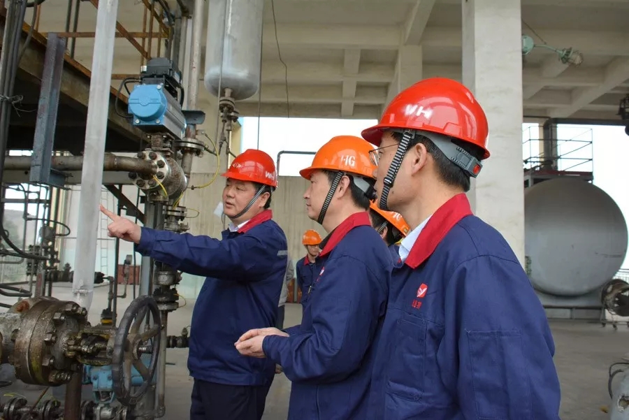 27日下午,吳福勝、孫先武剛到公司,顧不上休息,就在袁大兵、高文中等導(dǎo)陪同下深入生產(chǎn)線檢查安全工作。他們先后來(lái)到原料廠、動(dòng)力廠、有機(jī)廠開展檢查。在有機(jī)廠醇解工段,吳福勝?gòu)臉堑剿臉?,?duì)每臺(tái)關(guān)鍵設(shè)備和關(guān)鍵點(diǎn)都仔細(xì)查看,提出整改意見。28日早,吳福勝又來(lái)到VAE乳液廠檢查,了解鍋爐運(yùn)行、DCS報(bào)警系統(tǒng)、用電安全等工作。每到處,吳福勝都對(duì)各工序進(jìn)行認(rèn)真巡查,詳細(xì)了解生產(chǎn)工藝控制參數(shù),反復(fù)查看現(xiàn)場(chǎng)值班巡檢記錄,與操作人員深入交流,叮囑大家時(shí)刻繃緊安全生產(chǎn)這根弦,堅(jiān)守底線思維,落實(shí)安全責(zé)任,確保安全生產(chǎn)。