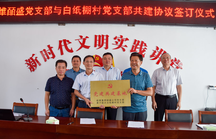隨后,白紙棚村黨支部書記漆仲存與集團皕盛公司黨支部書記沈小罡簽訂了黨建共建協(xié)議,沈小罡向村黨支部捐贈了書籍。