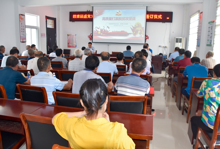 中午稍作休息后,吳福勝為全村40多名黨員上了堂內(nèi)容豐富、生動活潑的黨課。他以《高質(zhì)量打贏脫貧攻堅戰(zhàn)》為題,深刻闡述了黨中央和習近平總書記帶全國各族人民,堅持精準脫貧方略,在脫貧攻堅戰(zhàn)中取得了巨大勝利;完全回顧了集團公司與白紙棚村攜手奮進,實現(xiàn)了全村出列、群眾脫貧;著眼全村群眾在脫貧后如何走上致富之路,提出了產(chǎn)業(yè)發(fā)展的新思路。個小時的時間,黨員們認真聆聽,聚精會神,整個會場鴉雀無聲、落針可聞。