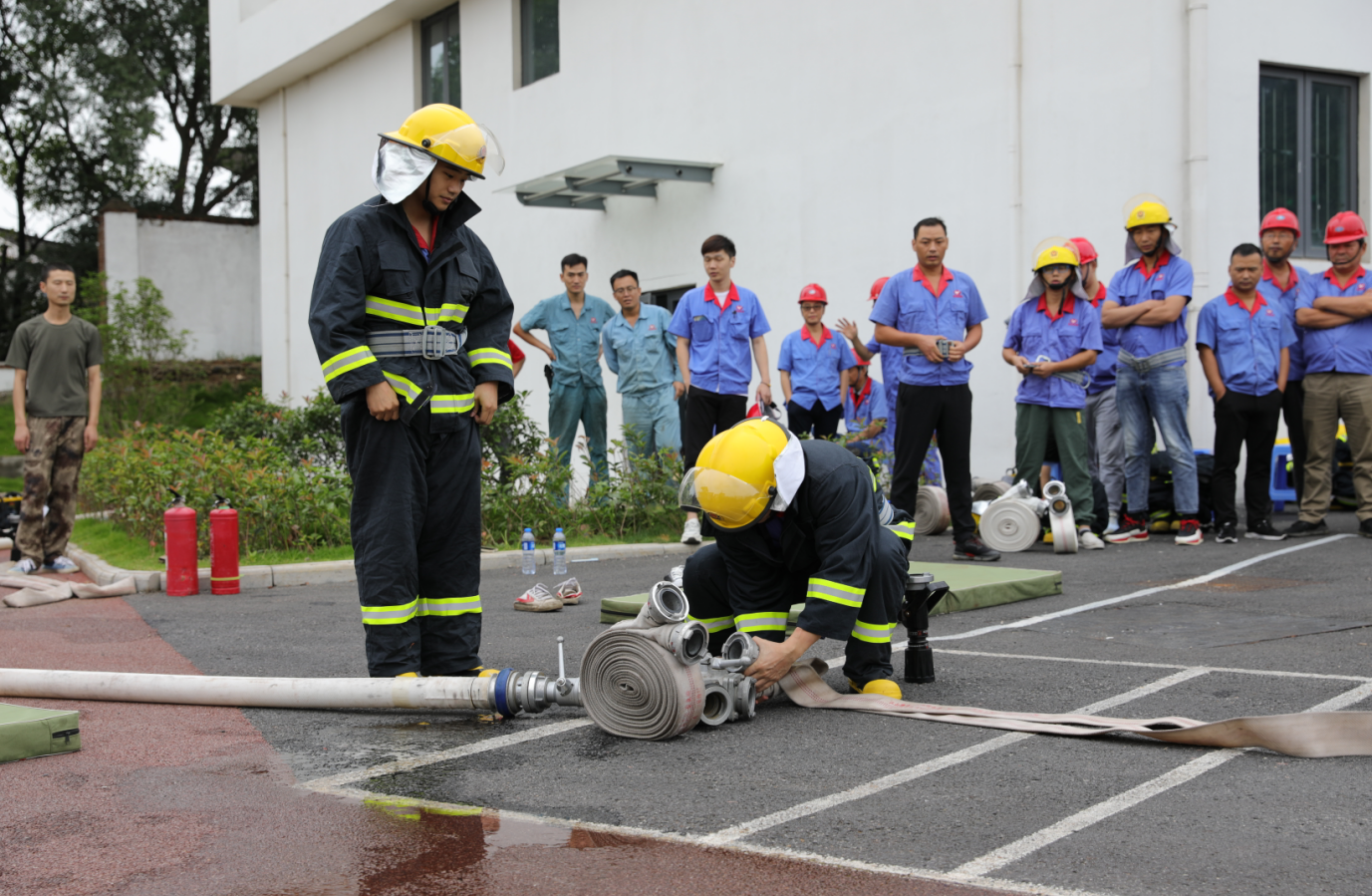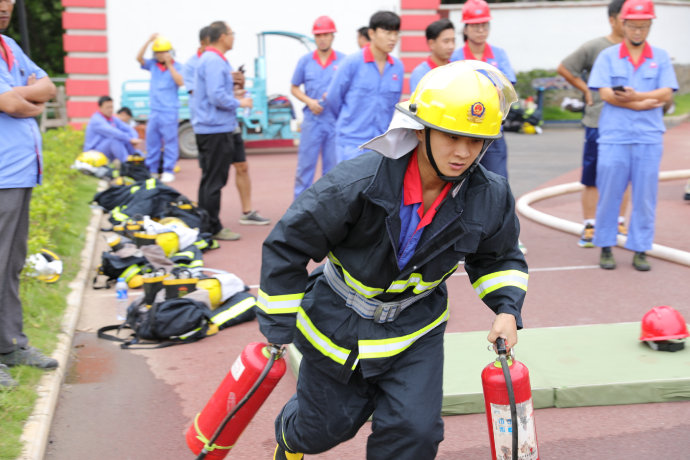 ? 為檢驗(yàn)各單位義務(wù)消防隊(duì)伍技能訓(xùn)練和微型消防站建設(shè)成果,根據(jù)“消防安全活動月”安排,8月27日,公司在消防隊(duì)舉行義務(wù)消防隊(duì)技能競賽。