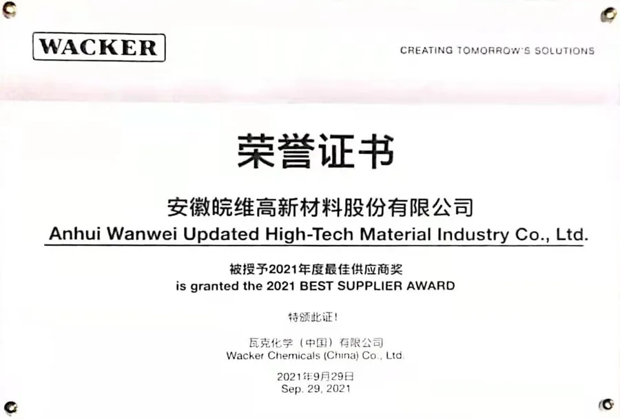 皖維獲得2021年度瓦克“最佳供應(yīng)商獎(jiǎng)”