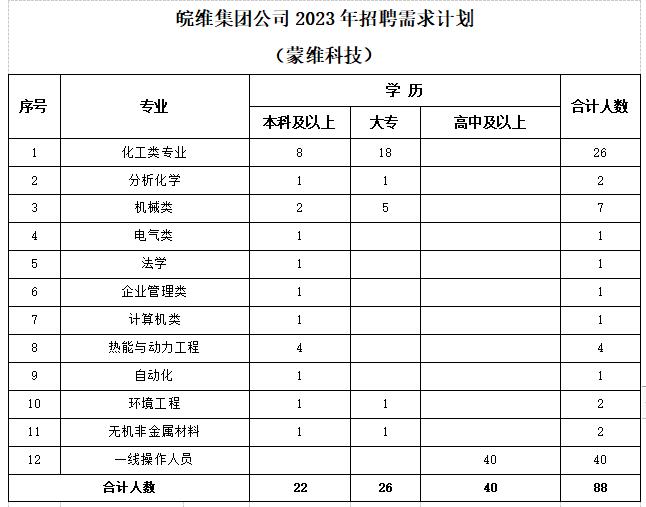 皖維集團(tuán)2023年招聘需求計(jì)劃