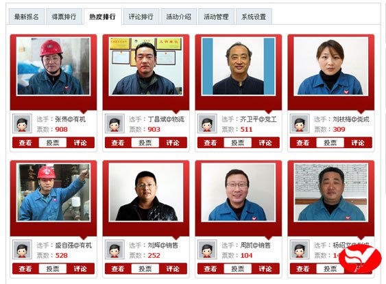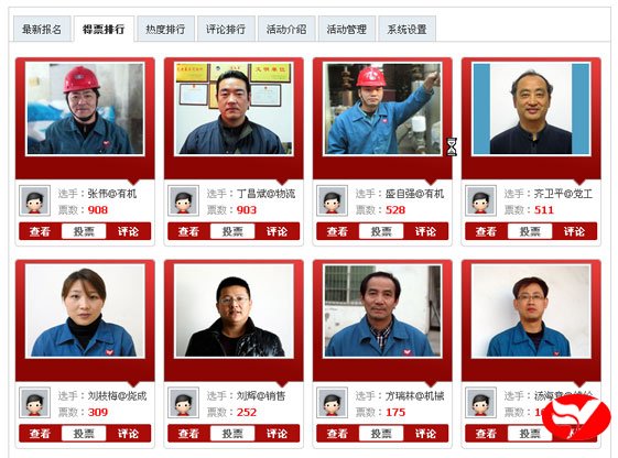 在得票榜中,機(jī)械設(shè)備公司方瑞林闖入前8名,大有后發(fā)制人之勢;在人氣榜中,制成分廠楊紹文也挺前8強(qiáng),實(shí)屬不易。