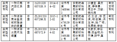20141028安徽省經信委組織專家對大有光低熔點聚酯切片新產品進行鑒定。鑒定意見:項目產品通過改性單體的引入,采用直接酯化法得到低熔點的共聚聚酯。產品研發(fā)過程中通過配方設計、催化體系選擇和工藝化,得到的產品熔點<100℃,具有自粘性等特性,并獲得實用新型專利三項,生產技術和產品性能處于國內先水平(附件2.2.5)。