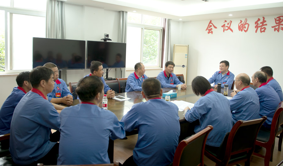 9月26日中午皖維高新首要次黨代會代表分組討論期間,黨委書記、董事長吳福勝先后來到來自廣西皖維公司的第七代表組和來自蒙維科技公司的第八代表組,看望兩個外埠子公司的代表,并參加兩個代表組的討論。